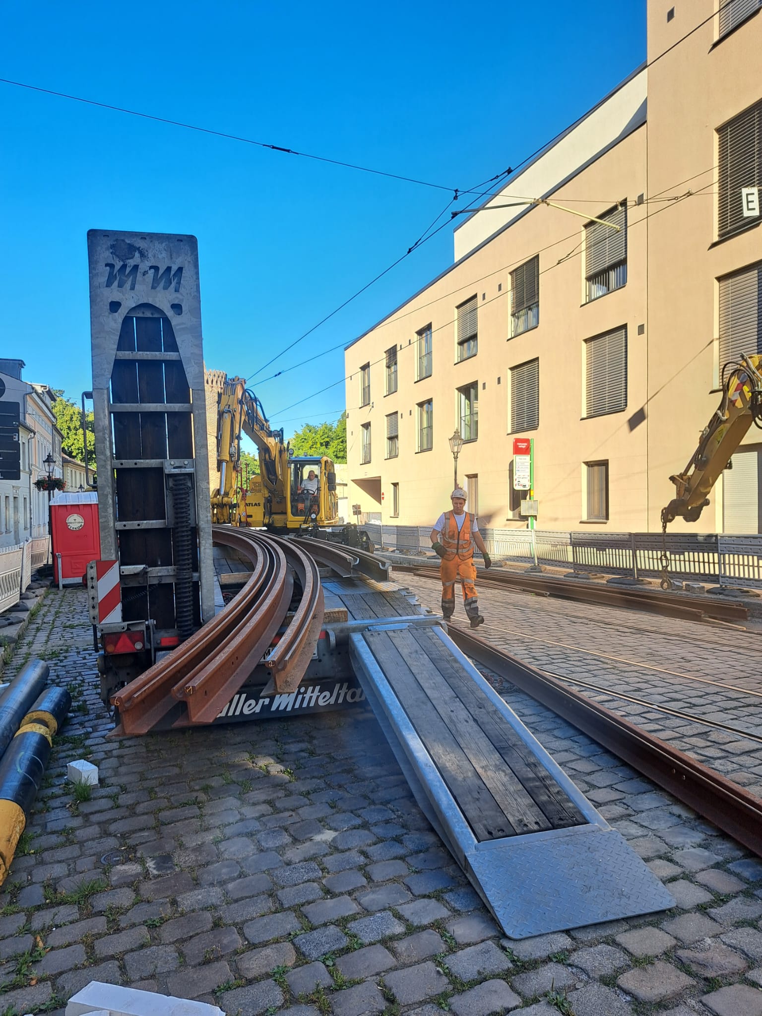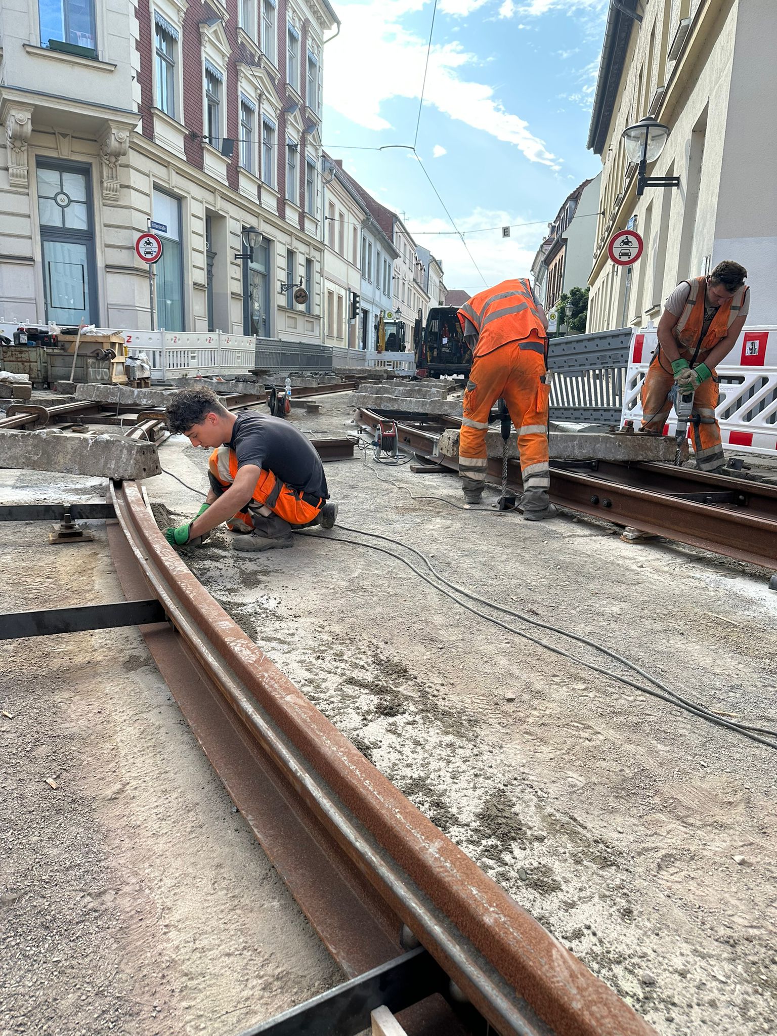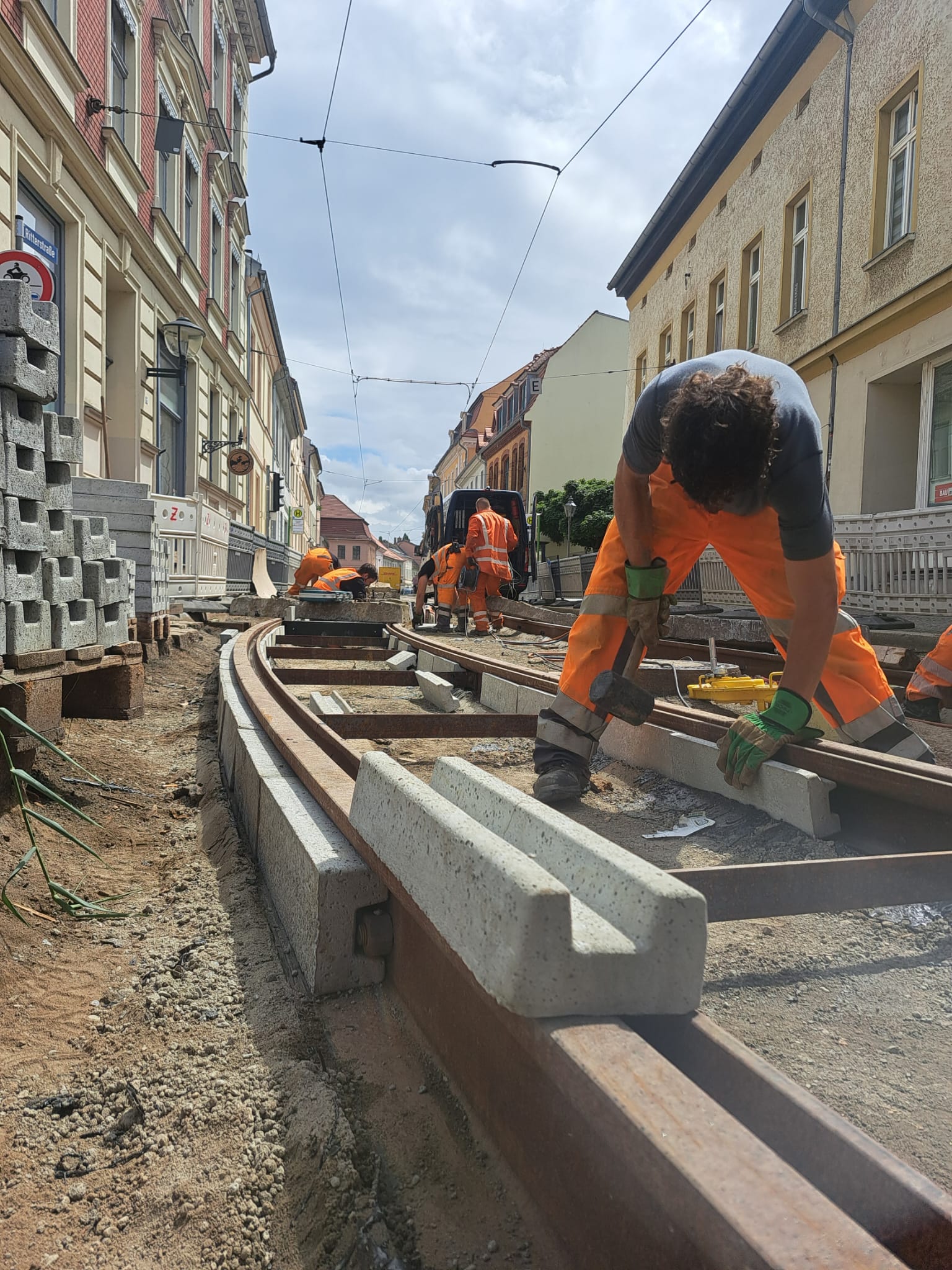 Eingedeckte Gleisanlagen liegen direkt im Straßenkörper und sind sowohl für die Straßenbahn als auch für den normalen Straßenverkehr da. Wir bauen für dich eingedeckte Querschwellen- und Rahmengleise – mit vielen verschiedenen Eindeckungsmöglichkeiten. So kannst du dir sicher sein, dass deine Gleisanlage genau zu den Anforderungen vor Ort passt.