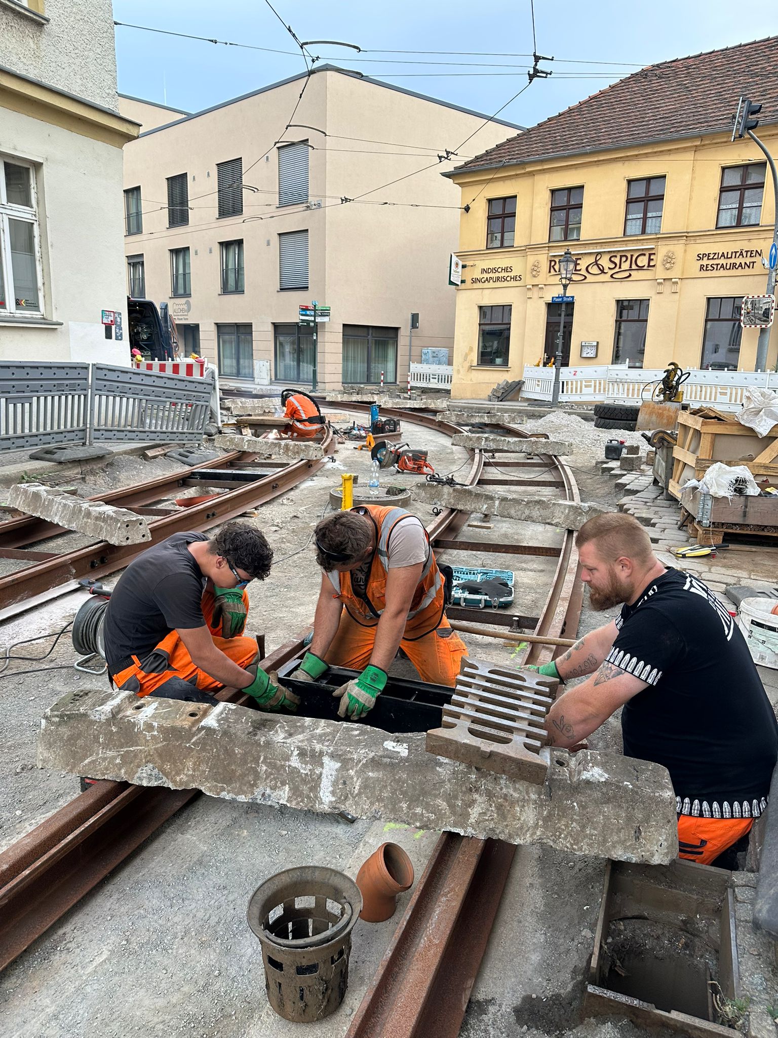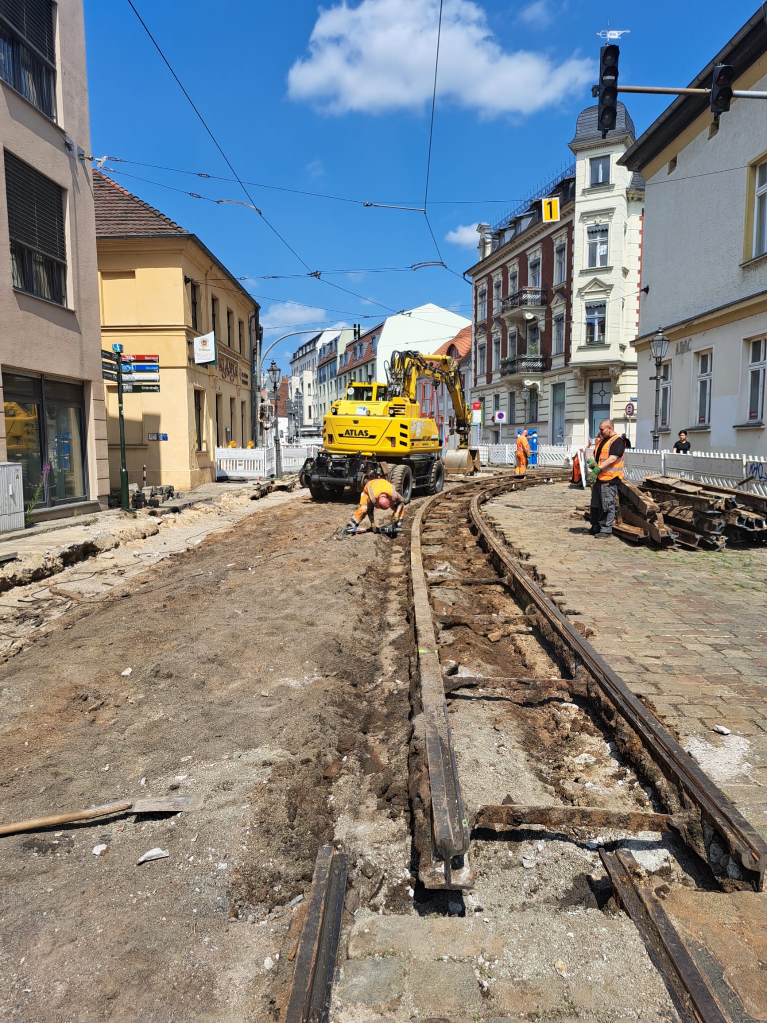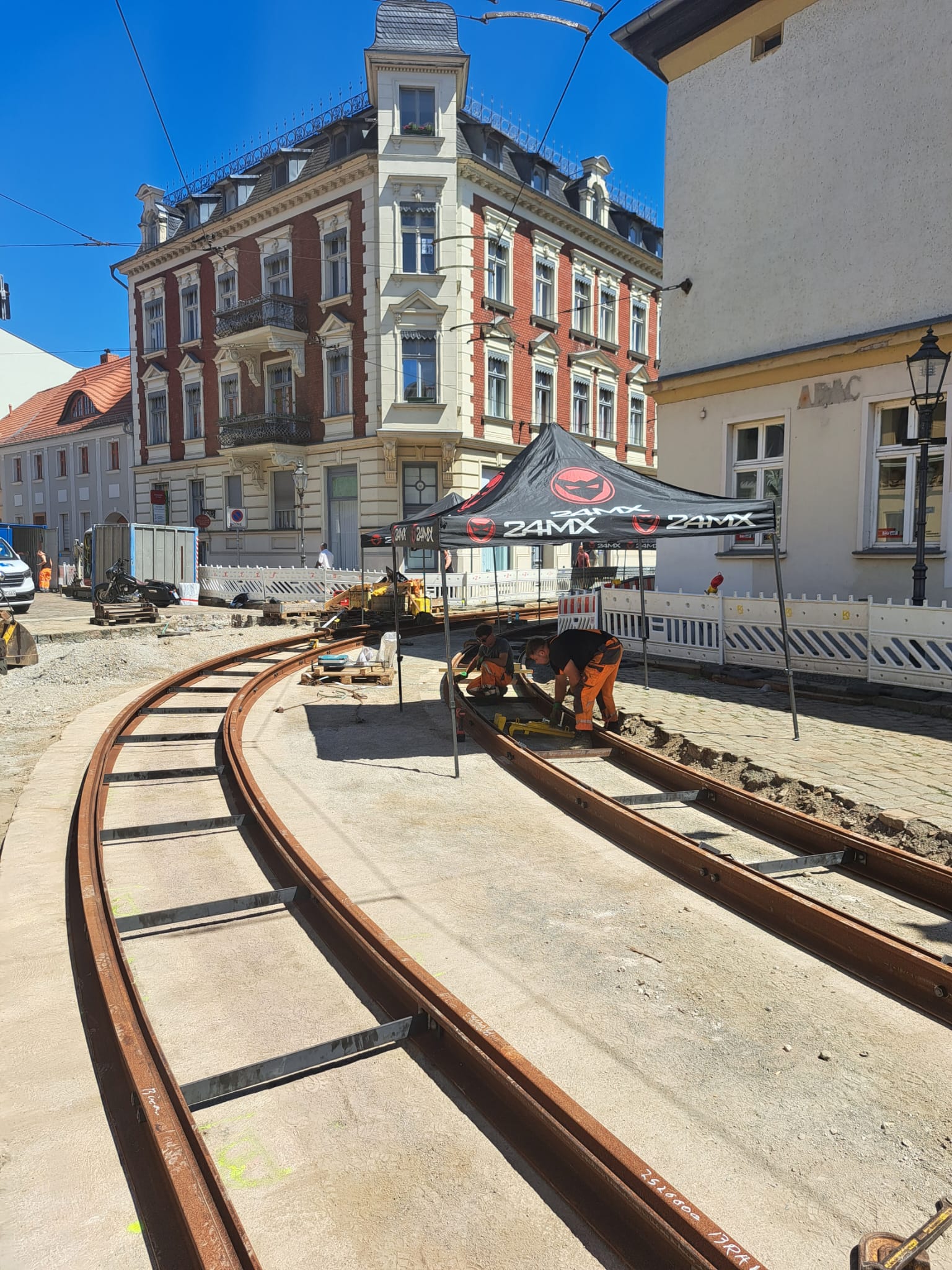 Eingedeckte Gleisanlagen liegen direkt im Straßenkörper und sind sowohl für die Straßenbahn als auch für den normalen Straßenverkehr da. Wir bauen für dich eingedeckte Querschwellen- und Rahmengleise – mit vielen verschiedenen Eindeckungsmöglichkeiten. So kannst du dir sicher sein, dass deine Gleisanlage genau zu den Anforderungen vor Ort passt.
